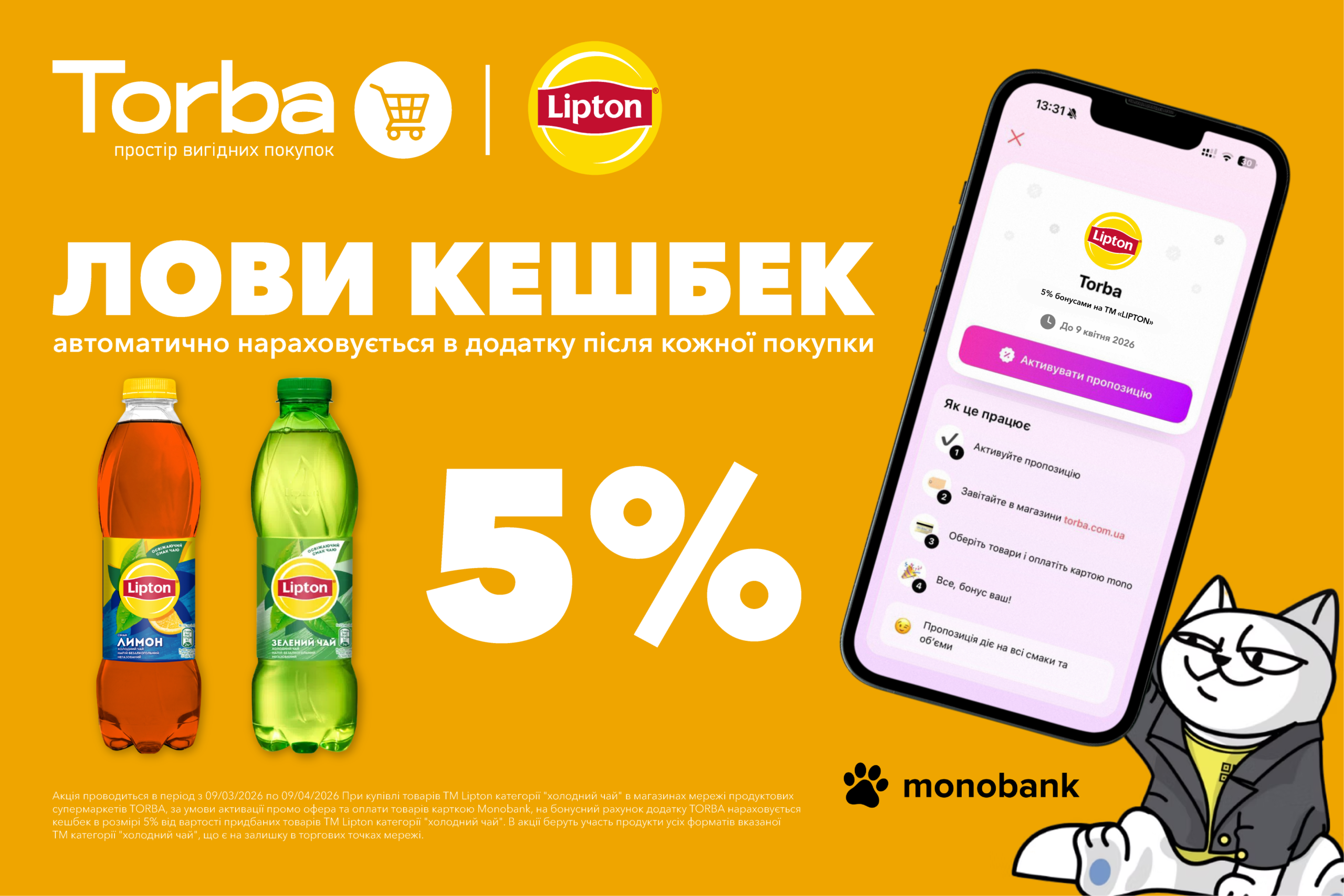 Кешбек 7% на ™Lay’s та ™Doritos разом з TORBA та Monobank 🍟💳 З 09.03.2026 по 09.04.2026 купуй улюблені снеки ™Lay’s та ™Doritos у супермаркетах TORBA, розраховуйся карткою Mono та отримуй 7% кешбеку на бонусний рахунок у додатку TORBA. Як