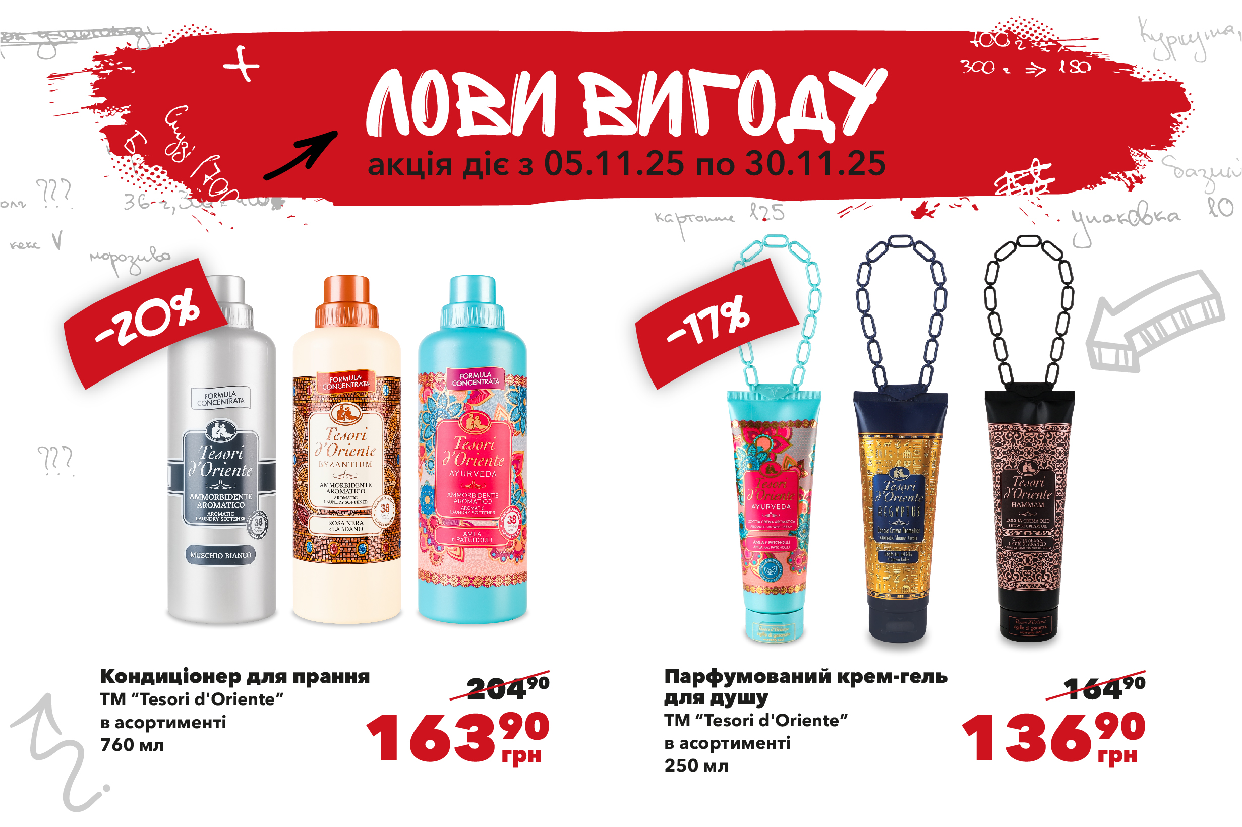 Наші полиці наповнені вигідними пропозиціями. Неймовірні знижки чекають на вас – на обранні товари! Акція діє з 03.11.25 по 30.11.25