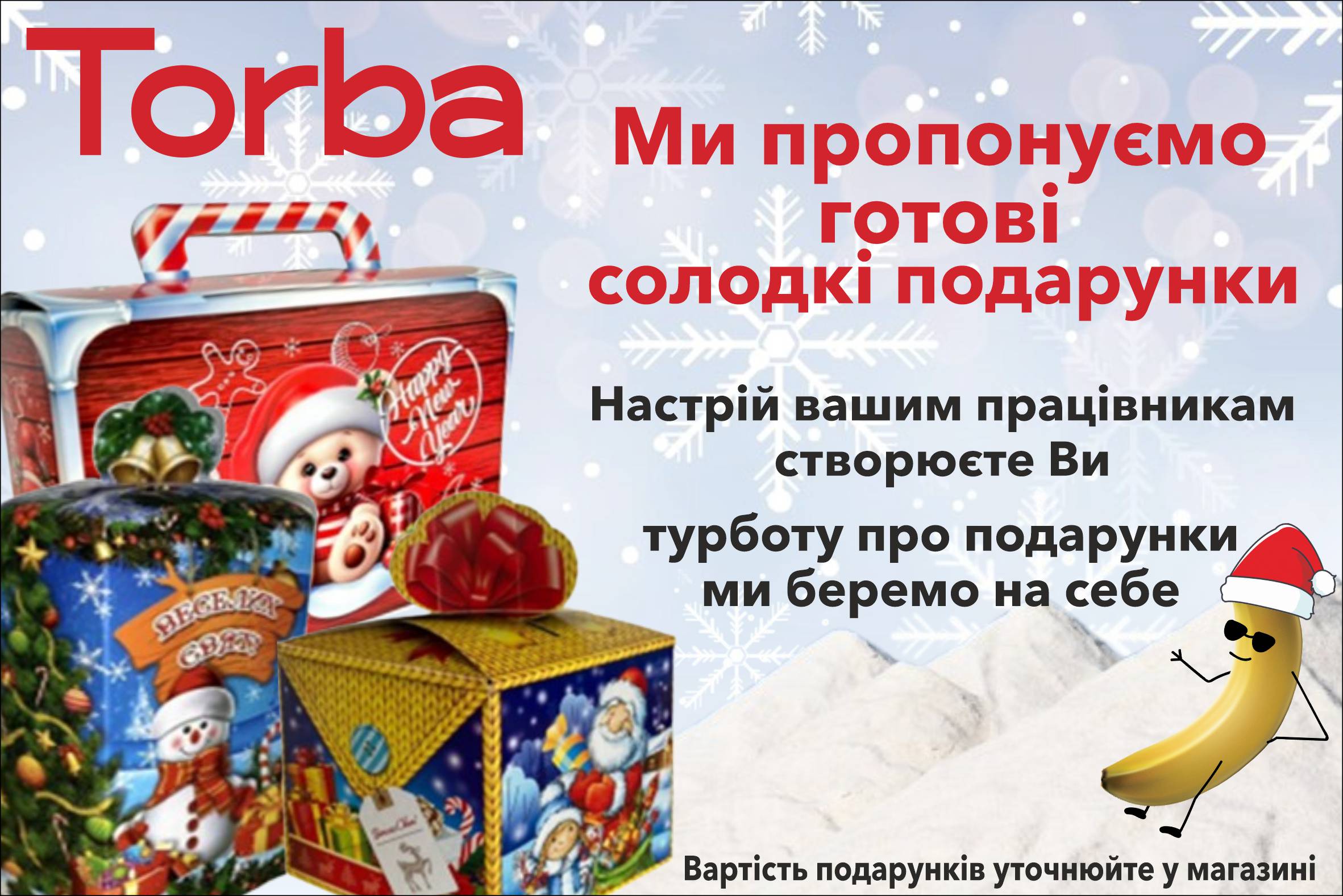🎄 До Дня Св. Миколая та Новорічно-Різдвяних свят Торба підготувала смачні солодкі подарунки! 🎅Ми пропонуємо смачні солодкі подарунки для садочків, підприємств та організацій у будь-якій кількості. Вашим працівникам чудовий настрій створюєте Ви, а турботу про подарунки ми беремо на себе!Поспішайте зробити замовлення — ми подбаємо про кожну деталь!🌟 Нехай святкові дні будуть смачними і яскравими разом із Торбою!
