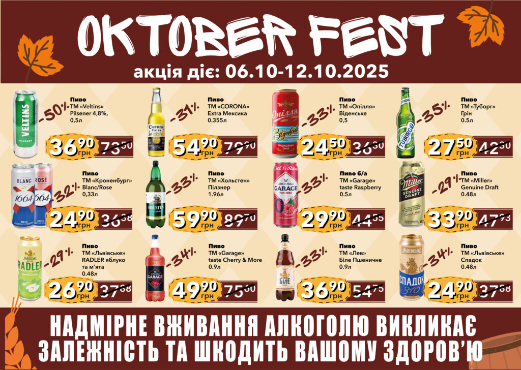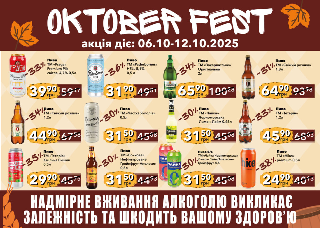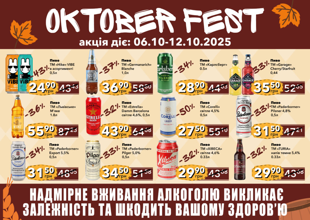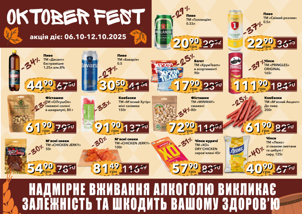 У супермаркетах “Торба” стартував масштабний October Fest! Підготуйтеся до неймовірних знижок на найпопулярніші снеки та пиво. Це чудова можливість зібрати ідеальний набір для вечірніх посиденьок із друзями або для перегляду футбольного матчу.