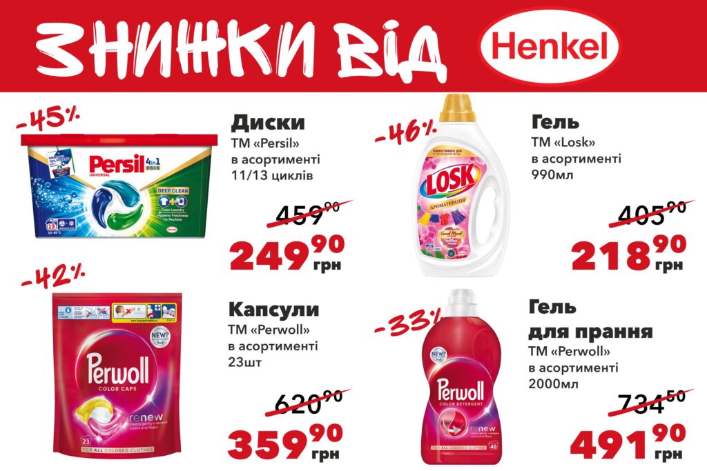 Піклуйтесь про чистоту вашого одягу за доступною ціною! Тільки зараз у вас є шанс придбати порошки та гелі для прання від Henkel зі знижкою до 46%.